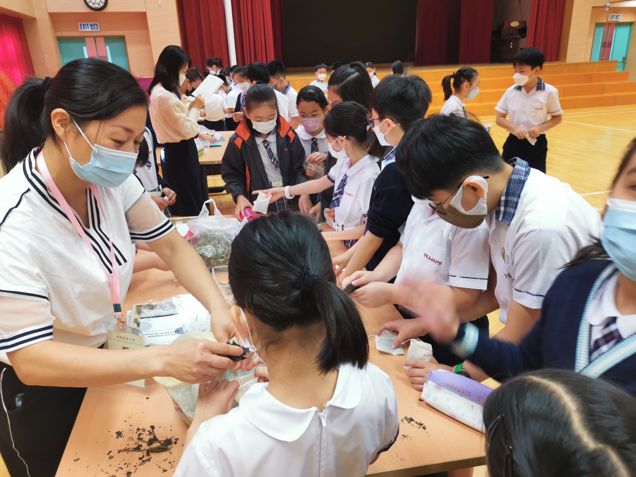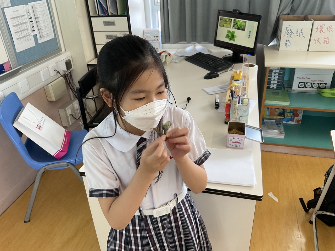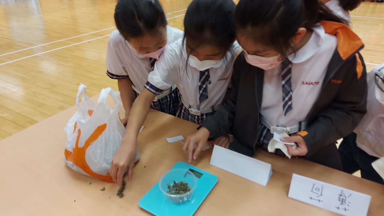 香港春夏季潮溼多雨,易滋生蚊蟲。有見及此,四年級增設了一節讓學生認識中草藥的課堂,利用薄荷、金銀花、艾葉等中藥製作驅蚊香囊。活動中學生除了認識中藥用途、也嘗試利用嗅覺分辨不同的中草藥,更讓他們親手製作實用的驅蚊香囊,部分學生更把香囊作為母親禮物送給媽媽,倍感窩心。