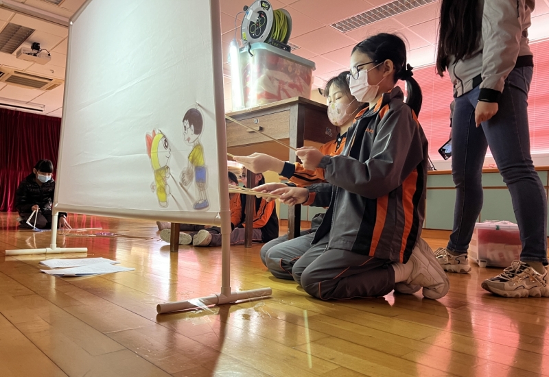 視藝之星學員在校內表演皮影戲給同學們欣賞