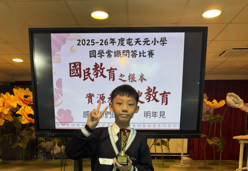本校問答隊於3月21日參加「25-26 年度屯天元小學國學常識問答比賽」,在「小學組問答擂台賽」獲優秀表現獎。